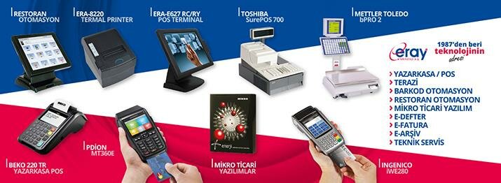Market, mağaza, restoran, cafe, pastane, vb. farklı ölçekte işletmeler tarafından kullanılabilen bütünleşik sistemler 32 yıllık tecrübesiyle Eray Teknoloji tarafından ihtiyacınıza göre tespit ediliyor, kurulumu yapılıyor ve teknik destek hizmeti veriliyor.